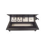 Caja Horizontal tipo Hub para escritorio color negro, con 1 Puerto HDMI Hembra-Hembra, 1 puerto RJ45 Cat6, 2 Puertos USB (Solo carga), y 2 Contactos eléctricos universales THMC-HBOX