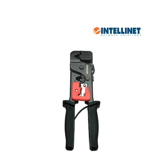 INTELLINET 210836 - PINZA P/CRIMPEAR RJ11-6P4C, 6P2C/RJ11 RJ12-6P6C RJ45-8P8C, 8P6C, 8P4C, 8P2C/ Corta y quita el forro del cable / Fabricada en Acero al carbón / Mango Antiderrapante / 210836