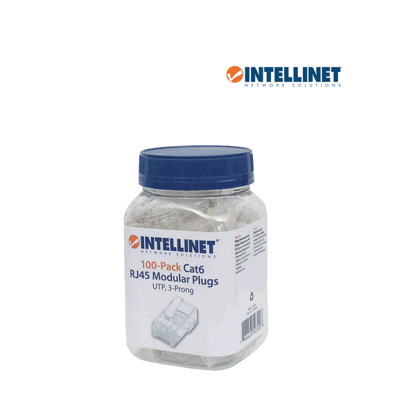 INTELLINET 503006 - Enchufe RJ45 CAT6 sólido UTP, bote de 100 piezas, con 15 micras de oro.