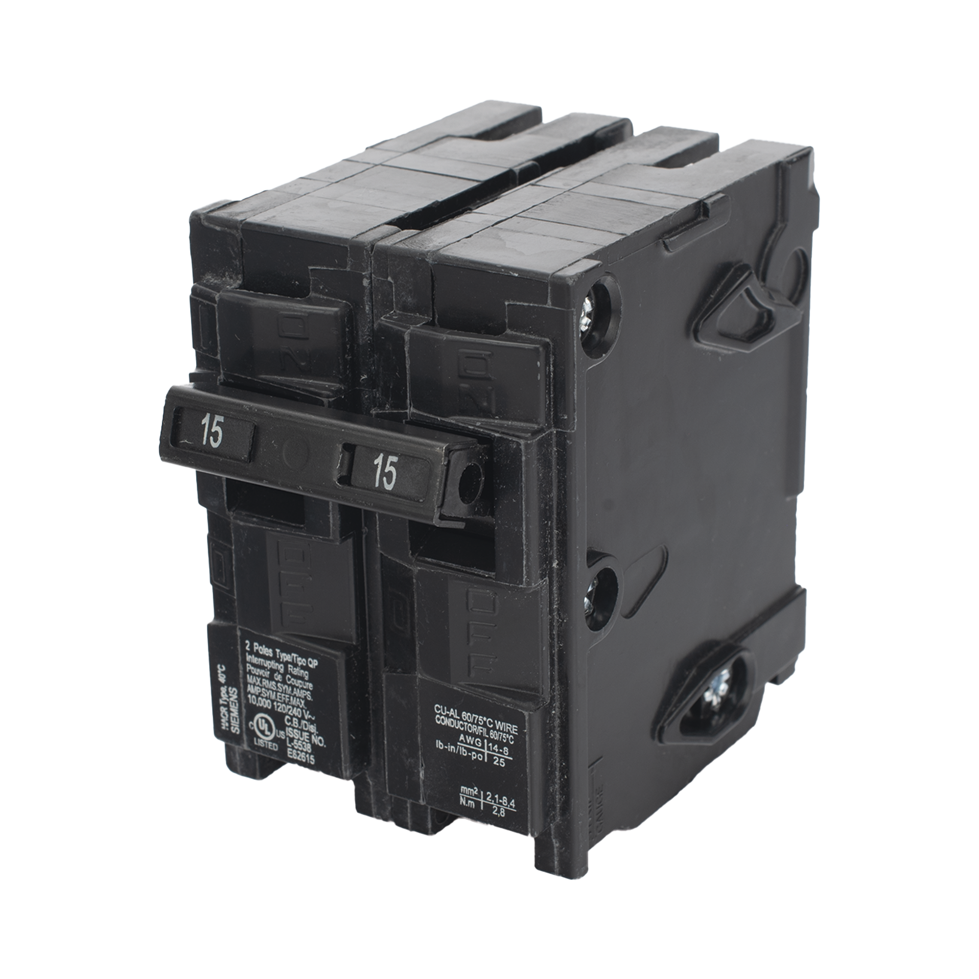 Interruptor automático enchufable tipo QP 2 polos, 15 amp Q215
