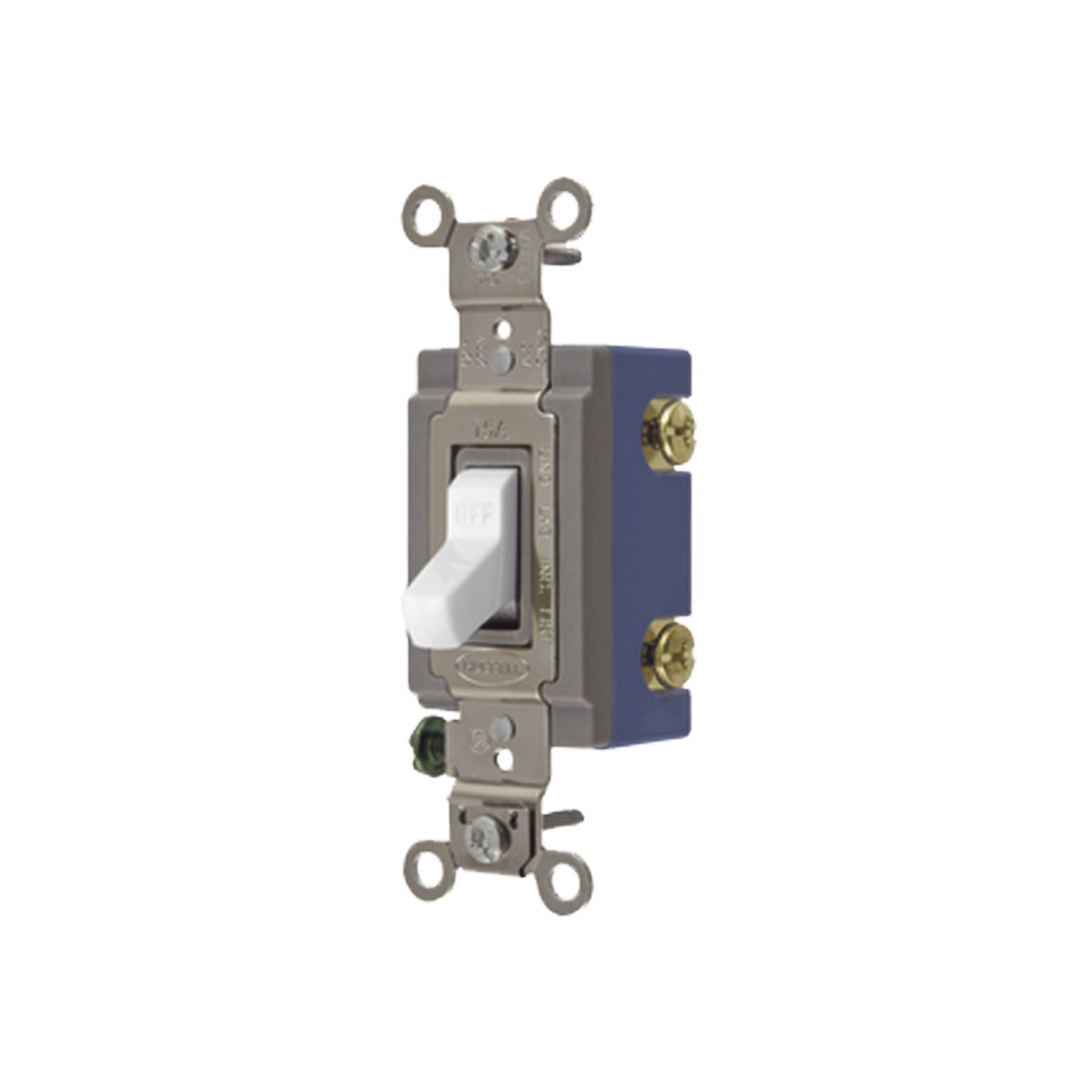 Interruptor de Palanca 15 A 120-277 V CA/ Unipolar / Grado Industrial/ Uso Extra Pesado / Cableado Lateral y Posterior / Color Blanco. HUB-HBL-1201-W