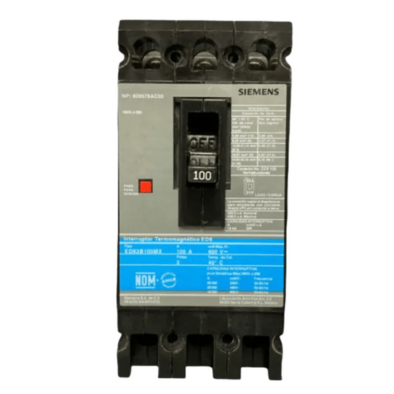 Interruptor Termomagnético ED63B100MX – 3 Polos, 100A, 600VCA – Marco ED de Alta Interrupción (Sin Zapatas).
