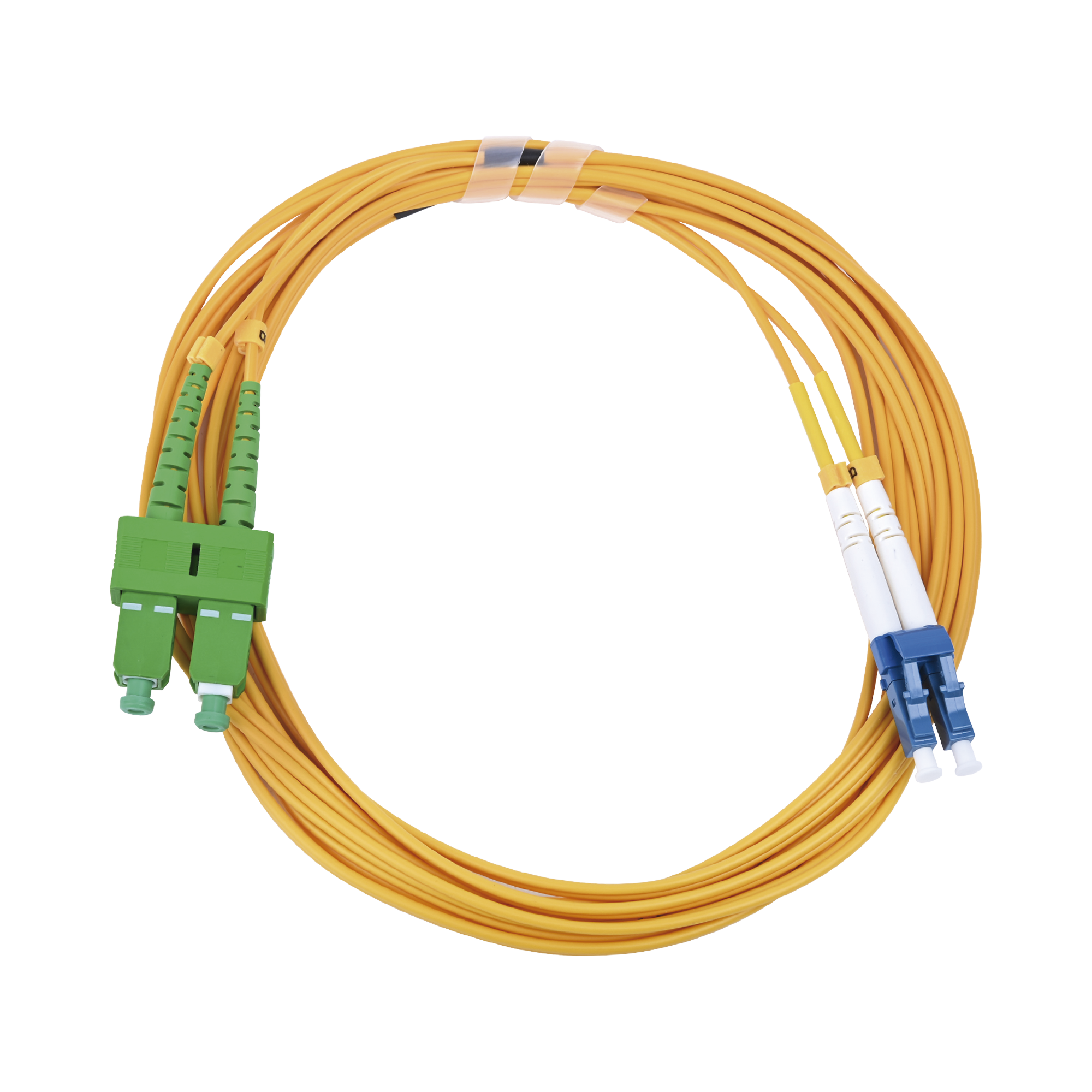 Jumper de Fibra Óptica Monomodo 9/125 LC/UPC-SC/APC, PVC, 2.0 mm, Dúplex, Amarillo, 3 Metros (9.84 Pies) LP-FO-D-LCU-SCA-03