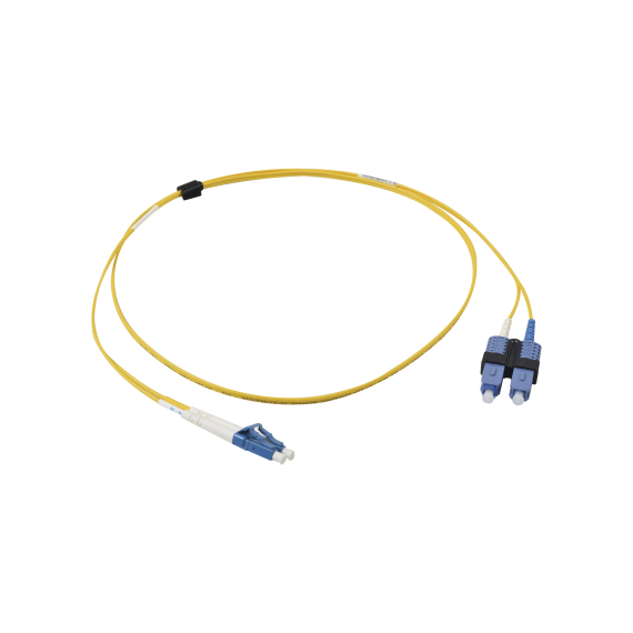Jumper de Fibra Óptica Monomodo (OS2), XGLO, Riser, LC/UPC-SC/UPC Duplex, OFNR, Color Amarillo, 1 Metro FJ2-LCUSCUL-01