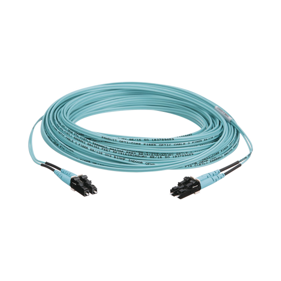 Jumper de Fibra Optica Multimodo 50/125 OM3, LC-LC Duplex, OFNR (Riser), Color Aqua, 10 Metros (32.81 Pies) FX2ERLNLNSNM010