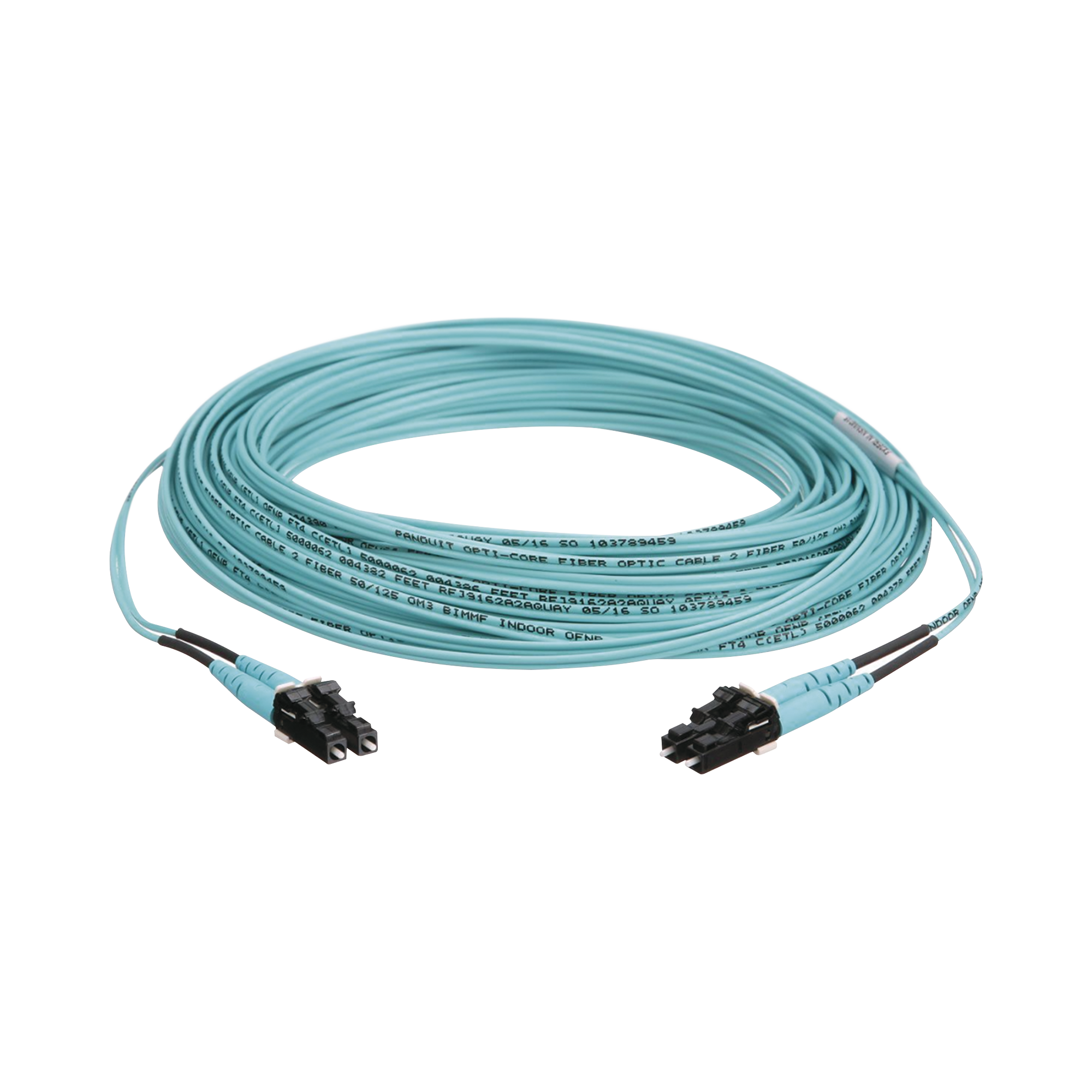 Jumper de Fibra Optica Multimodo 50/125 OM3, LC-LC Duplex, OFNR (Riser), Color Aqua, 15 Metros FX2ERLNLNSNM015