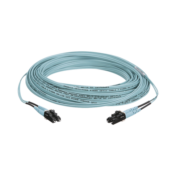 Jumper de Fibra Optica Multimodo 50/125 OM3, LC-LC Duplex, OFNR (Riser), Color Aqua, 50 Metros (164.04 Pies) FX2ERLNLNSNM050