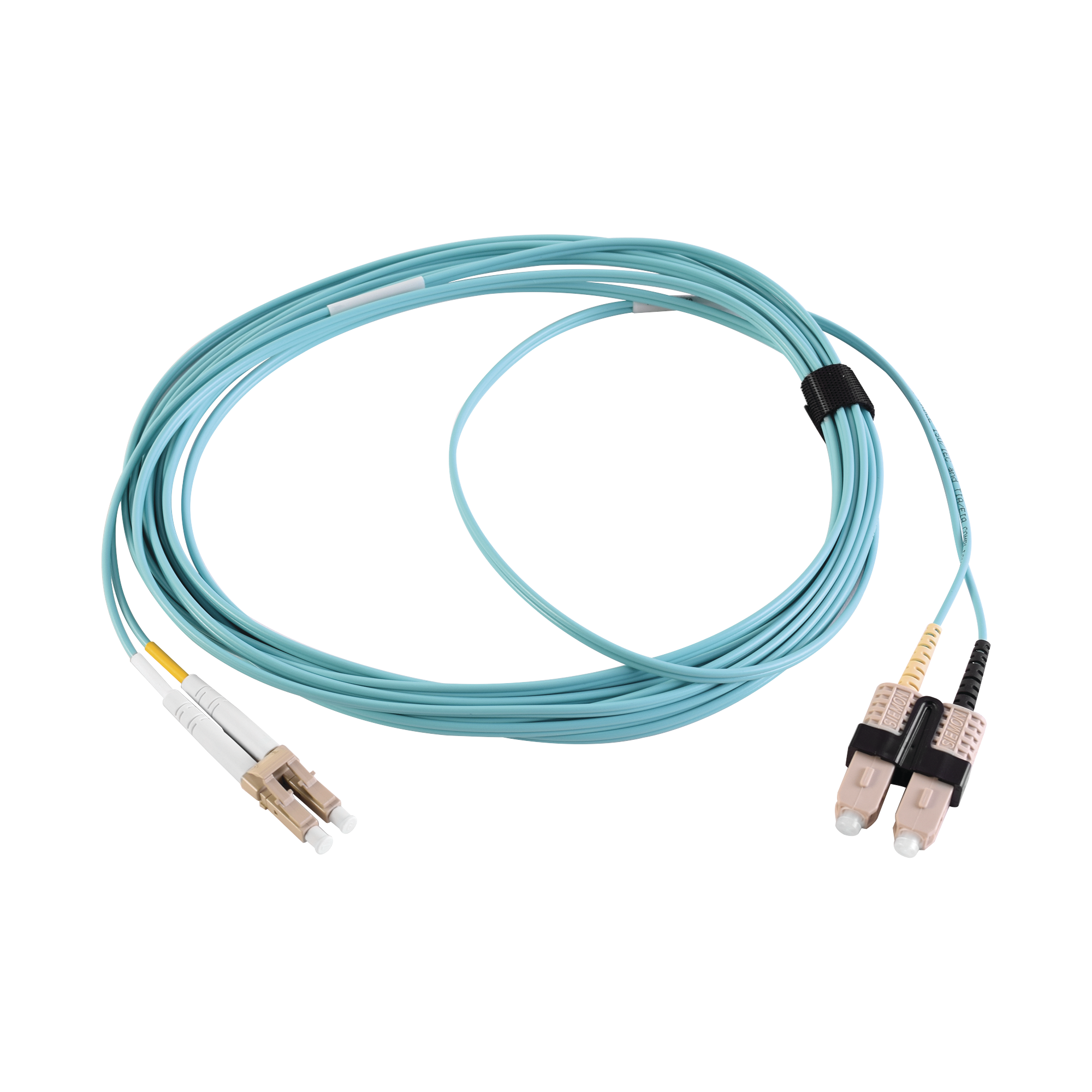 Jumper de Fibra Óptica Multimodo 50/125 XGLO OM3, LC-SC Duplex, OFNR, Color Aqua, 2 Metros FJ2-LCSC5L-02AQ