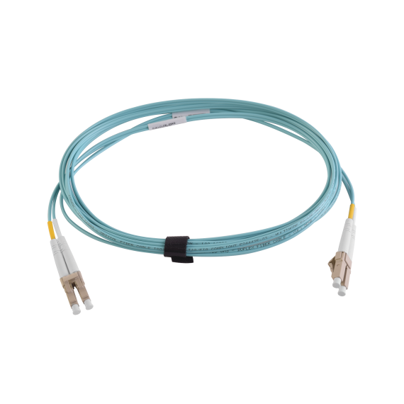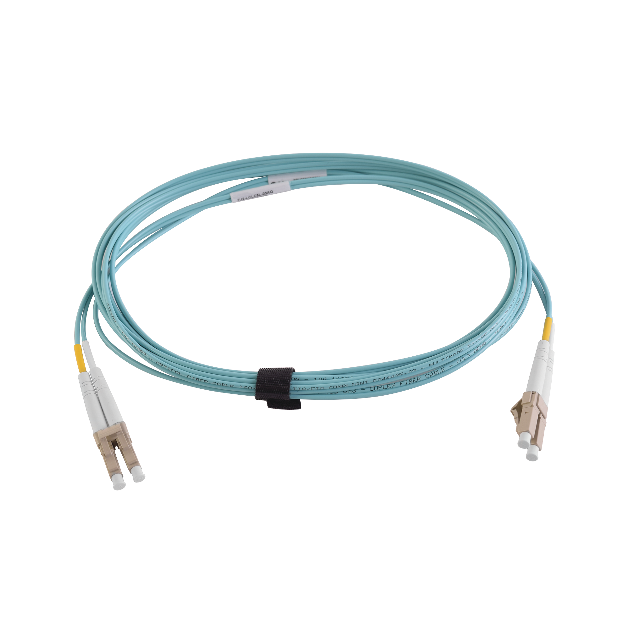 Jumper de Fibra Óptica Multimodo 50/125 XGLO OM4, LC-LC Duplex, OFNR, Color Aqua, 3 Metros FJ2-LCLC5V-03AQ
