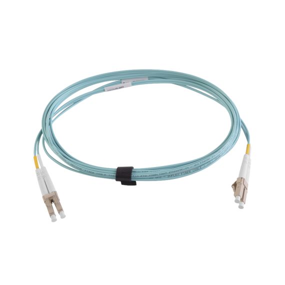 Jumper de Fibra Óptica Multimodo 50/125 XGLO OM4, LC-LC Duplex, OFNR, Color Aqua, 7 Metros FJ2-LCLC5V-07AQ
