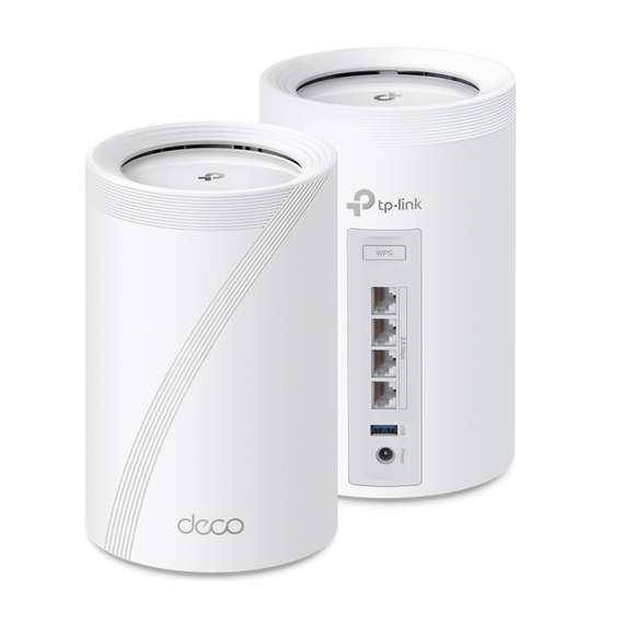 KIT 2 Routers Inalámbrico MESH Interior para Hogar / Triple Banda Wi-Fi 7 BE9300 Mbps / 2 Puerto 2.5 Gigabit WAN/LAN / 4 Antenas Internas / Operación Multi-Link MLO / Administración Mediante la App Deco (iOS, Android) / HomeShield DECO-BE65-2PACK