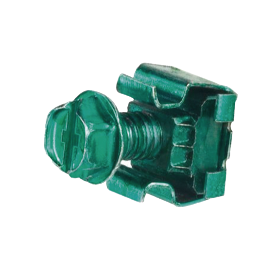 Tuerca enjaulada de unión verde; incluye 4 tuercas enjauladas de unión n.º 12-24 (panel grueso de 0.06 – 0.11) y 4 tornillos de unión n.º 12-24 x 1/2" con cabeza hexagonal combinada ranurada/Phillips n.º 2 (usar enchufe de 5/16" u 8mm). Ideal para aplicaciones de paneles de distribución.