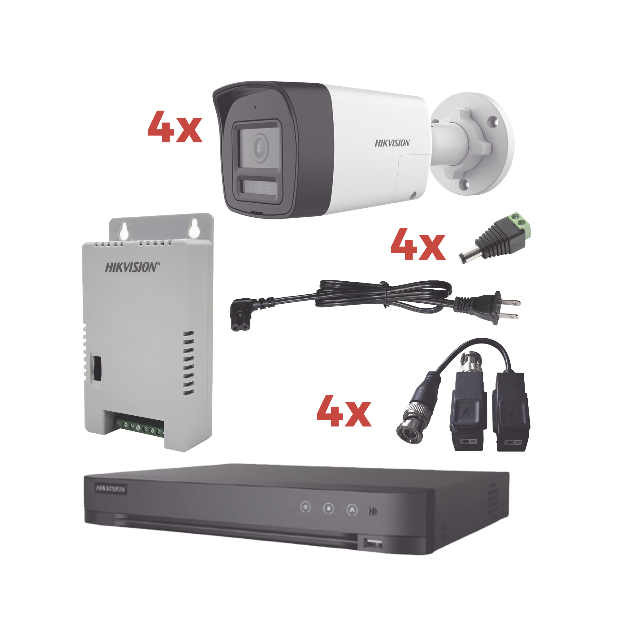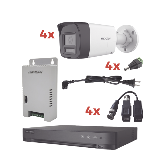 Kit Audio Bidireccional TurboHD 1080p / DVR 4 Canales / 4 Cámaras Bala (Exterior) con Bocina y Microfóno Integrado / 1 Fuente de Poder / Accesorios KH-1080P-4B-TWA