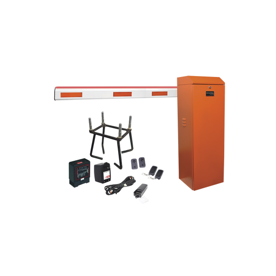 Kit COMPLETO Barrera Izquierda XB NARANJA / 3M / Iluminación LED Rojo-Verde / Incluye Sensor de masa, Transformador, Lazo, Ancla, Fotoceldas y 2 Controles Inalámbricos KIT-XBF2-LED-LN