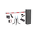 Kit de barrera vehicular izquierda color gris, brazo de 3 metros y accesorios de seguridad.