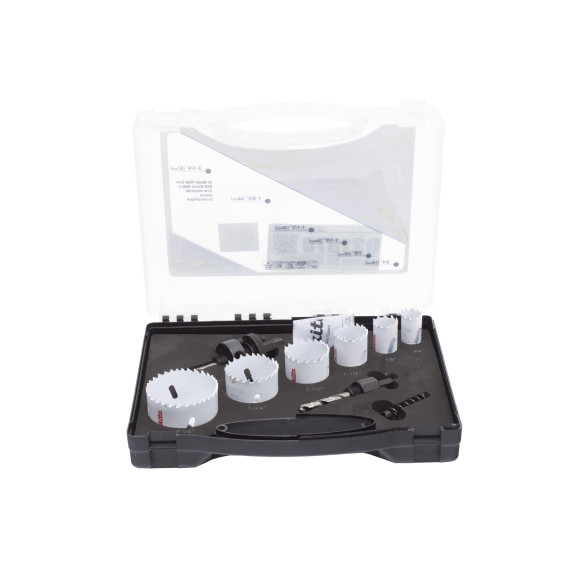 Kit de broca sierras (3/4 - 2 1/4 in) incluye 6 piezas de broca sierras, 2 adaptadores y resorte de expulsión. D-21870