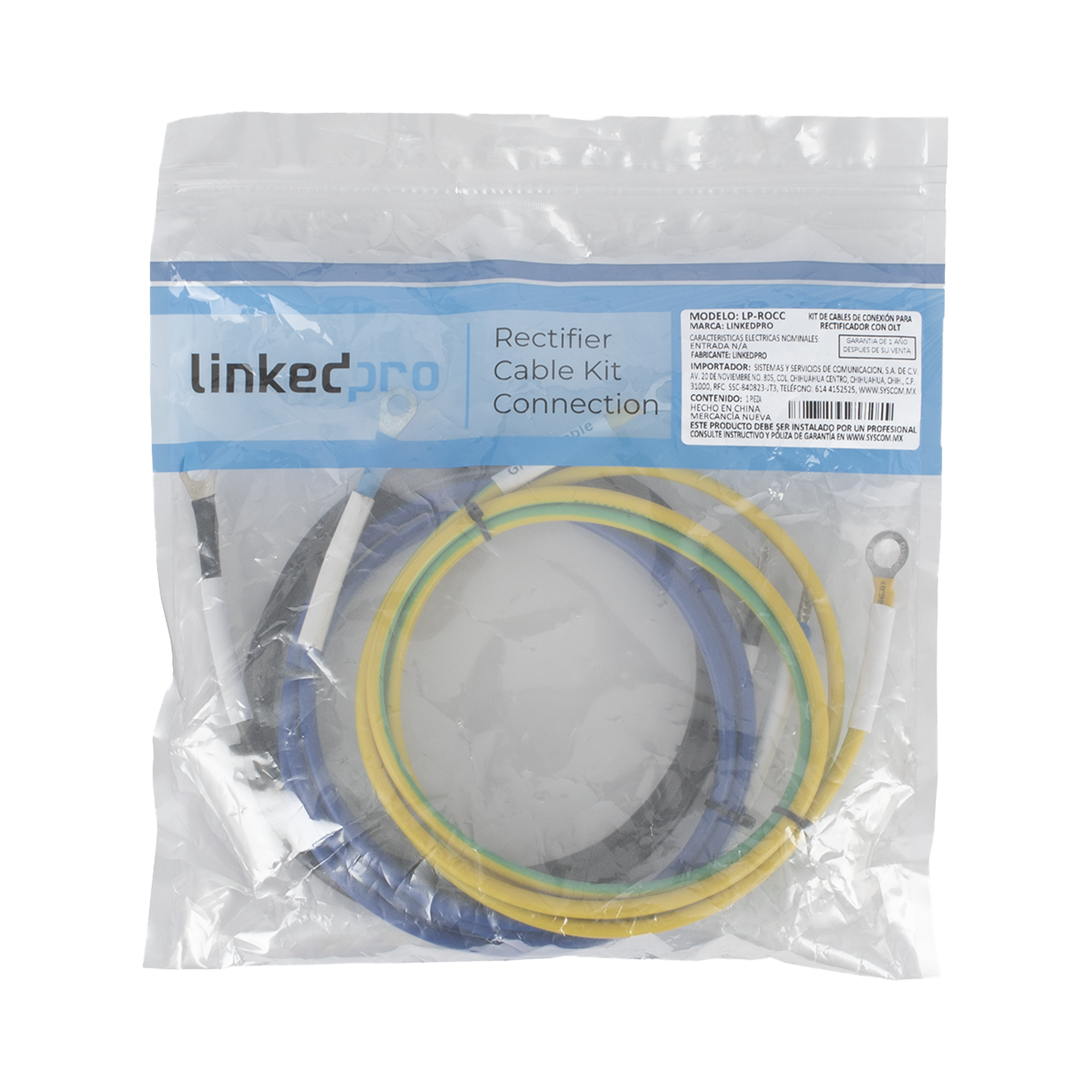 El Kit LP-ROCC es un conjunto de cables de conexión de potencia diseñado para aplicaciones eléctricas de –48 VDC, comúnmente utilizado en sistemas de telecomunicaciones y equipos de energía. El ensamble incluye tres cables independientes: cable de potencia negativa (–48 V), cable de retorno (0 V) y cable de puesta a tierra de protección.