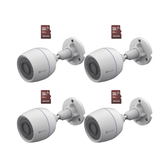 Kit de Camaras WiFi, Incluye 4 Piezas CS-H3C y 4 Piezas HS-TF-E1/32G / Detección de Movimiento CS-H3C/KM4