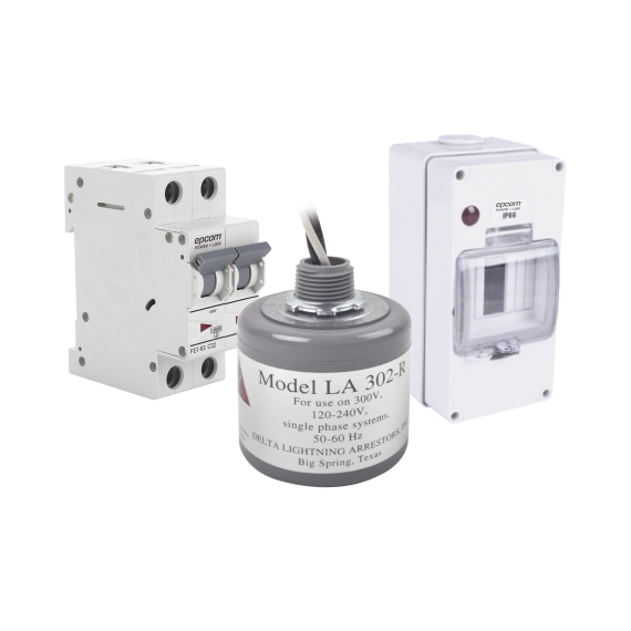 Use este restrictor de picos de voltaje en corriente alterna antes de su inversor. Así evitará daños debido a picos de corriente originados por descargas eléctricas inesperadas.