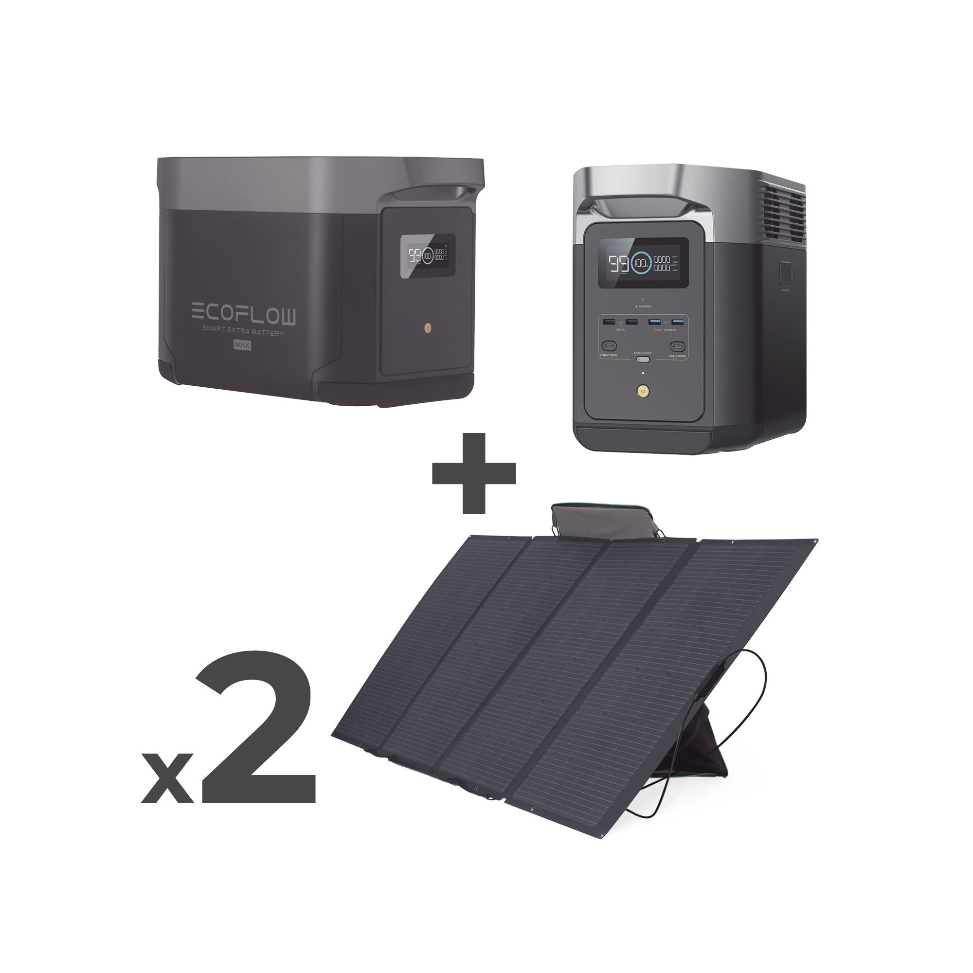 Kit de Estación de Energía Portátil 2048Wh + Batería Externa 2048Wh + 2 Paneles Solares Flexibles 400W (4096Wh, 800W Totales) DLT2MAX-KIT-BPLUS
