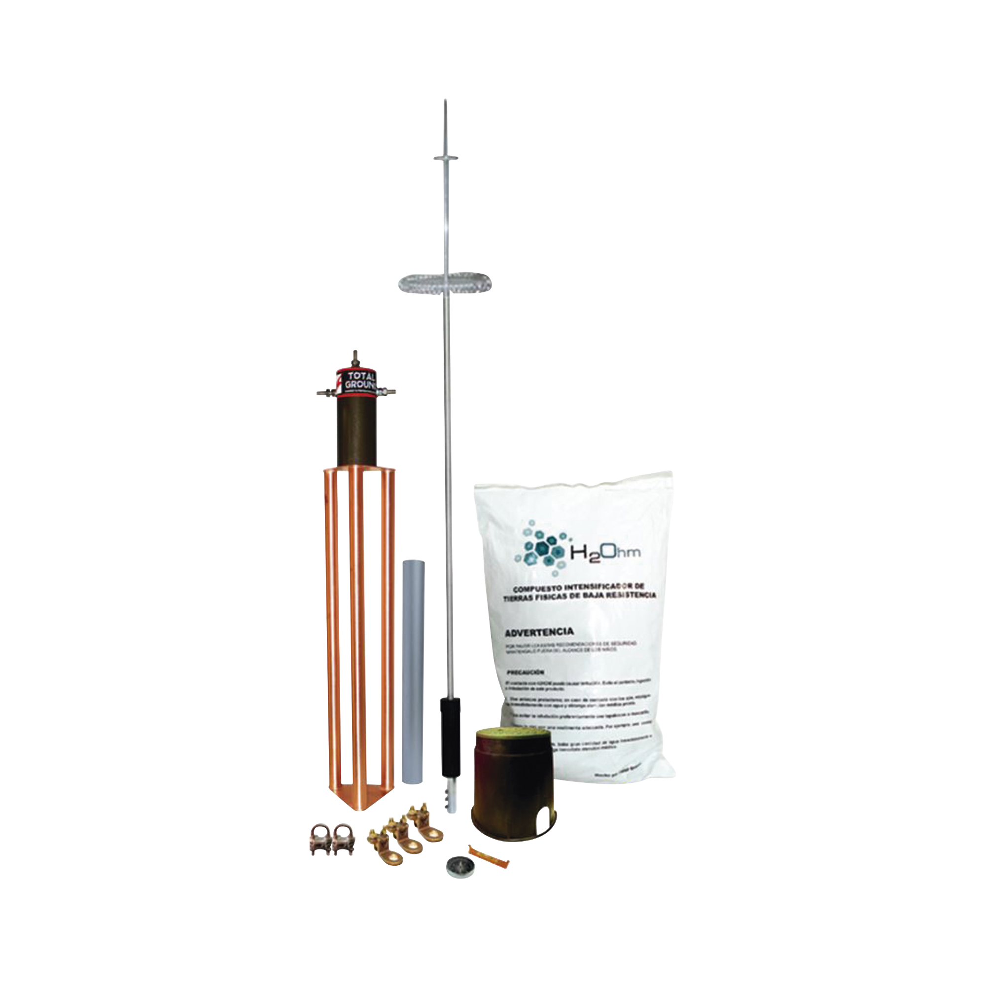 Kit completo de pararrayos con electrodo de descarga y accesorios.