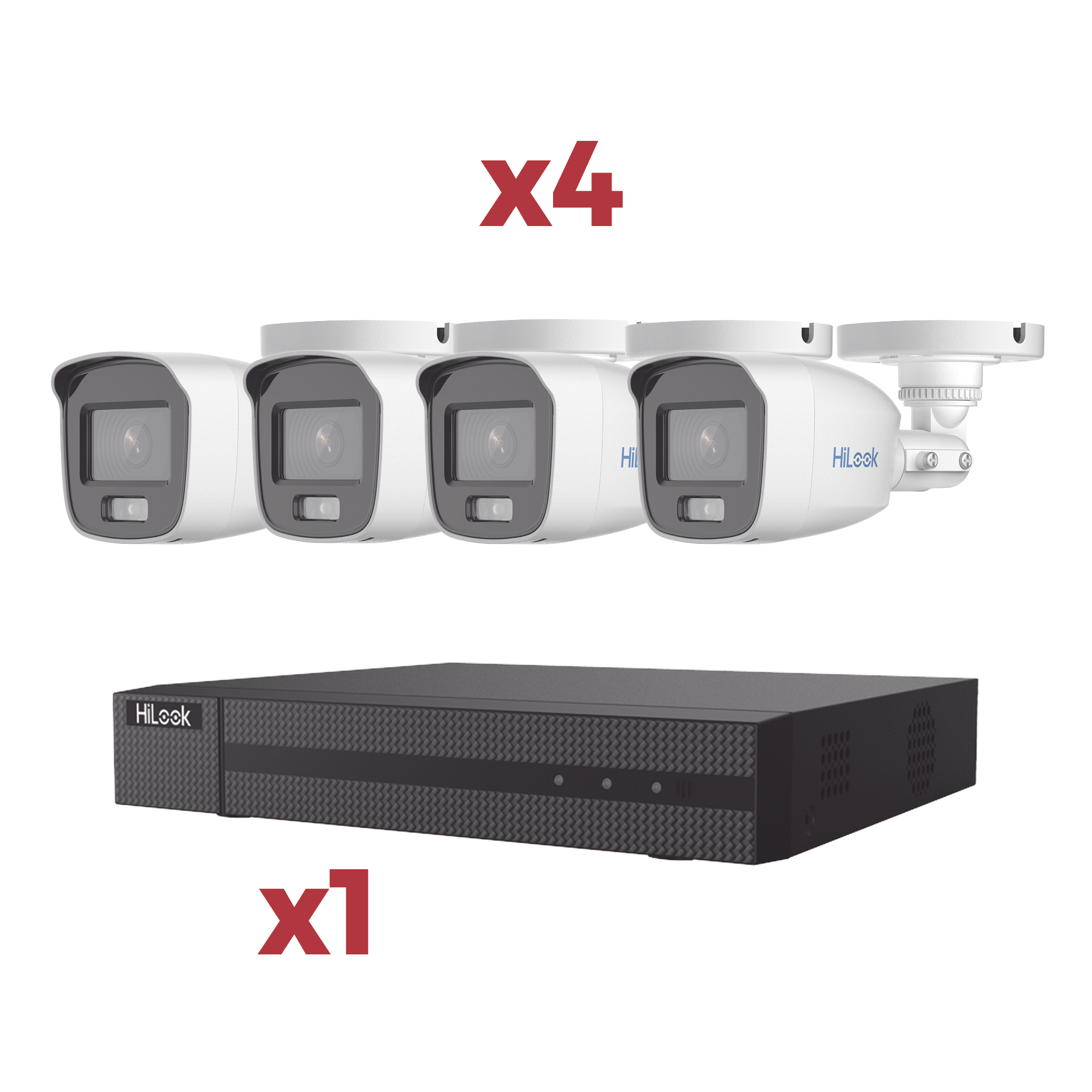 [Kit] DVR 4 Canales TurboHD + 1 Canal IP / 2 Megapixel (1080pLite) / AcuSense Lite / Audio por coaxitron / 1 Bahia de disco duro / 4 Cámaras 2 Megapixel tipo Bala / ColorVu Lite + Microfono Integrado HL-24B-KIT