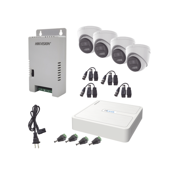 Kit HiLook Audio Bidireccional TurboHD 1080p / DVR 4 Canales / 4 Cámaras Eyeball (Exterior) con Bocina y Microfóno Integrado / 1 Fuente de Poder / Accesorios HL-1080P-4E-TWA