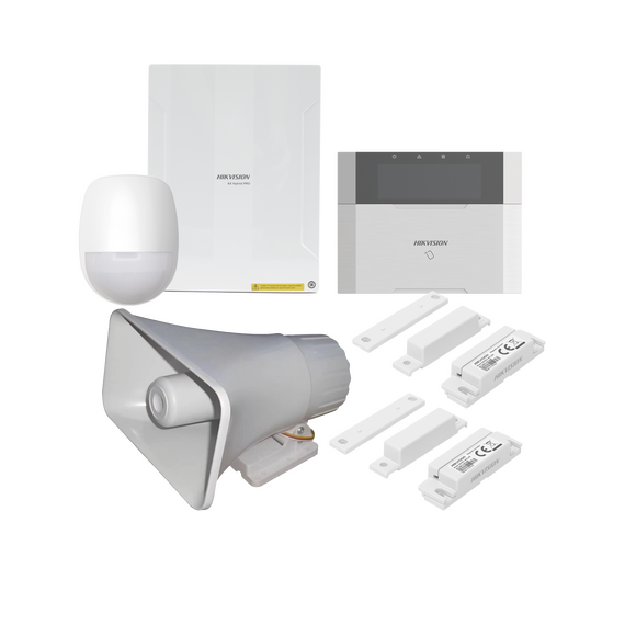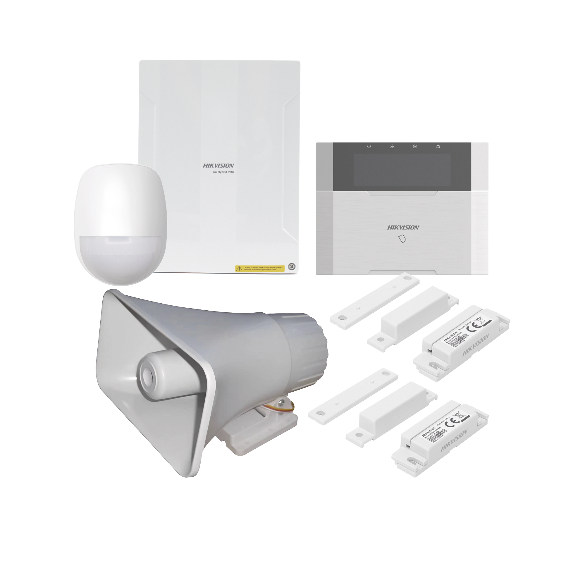 KIT Panel de Alarma AX HYBRID PRO / 1 Panel Híbrido / 1 Teclado LCD / 1 PIR / 2 Contactos Magnéticos / 1 Sirena de 30 Watts DS-PHA64-LP/PACK(30W)