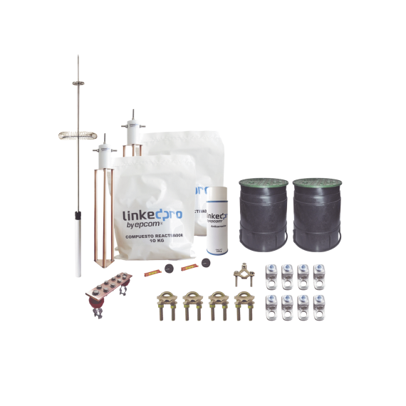 Fabricado en cobre con tratamiento electrolítico para obtener mayor conductividad, baja resistencia y durabilidad en terrenos agresivos. Por su diseño en forma delta obtiene mayor área de contacto con el terreno y así poder disipar de manera eficiente corrientes parásitas. Filtro equipotencial el cual posee la propiedad de amortiguar bajas frecuencias, minimizar ruidos, impedir paso de corrientes de retorno y unir equipotencialmente los electrodos naturales, así como prefabricados en sitio. Compuesto reactivador de terreno el cual se compone de minerales conductivos para bajar la resistividad de terreno y mejorar el funcionamiento del sistema de puesta a tierra.