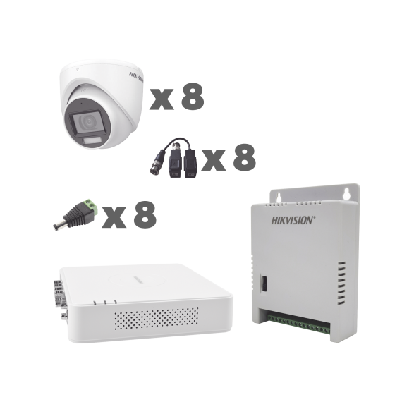 KIT TurboHD 1080p / DVR 8 Canales con audio por coaxitron / 8 Cámaras con Micrófono Integrado 101° Visión/ luz blanca + IR visión nocturna / Transceptores / Conectores / Fuente de Poder Profesional KH1080P8EWFH