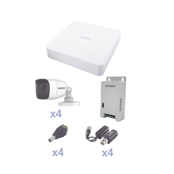 KIT TurboHD con Audio 1080p / DVR 4 Canales / 4 Cámaras Bala (exterior 2.8 mm) / Transceptores / Conectores / Fuente de Poder / AUDIO POR COAXITRON KEVTX8T4BG/A