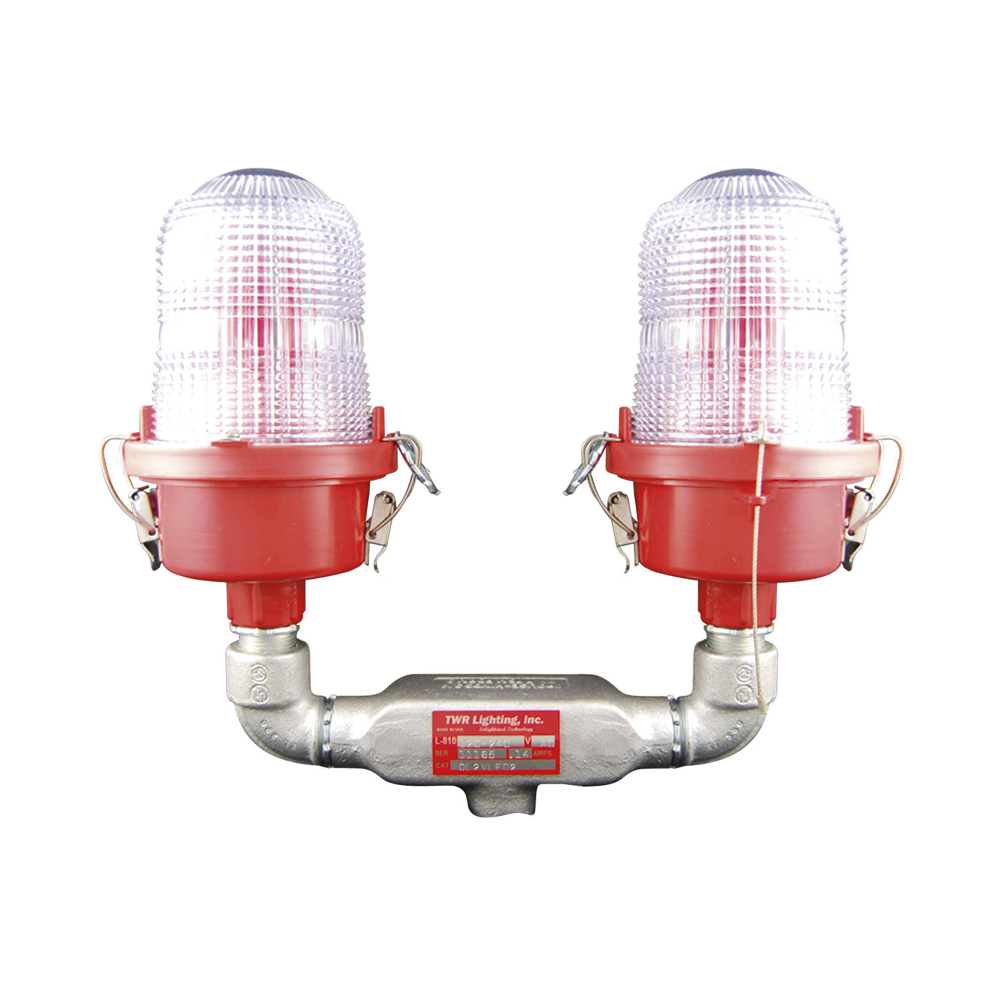 Lámpara de Obstrucción Roja Certificada/ Luz Fija Tipo L-810 Doble LED/ 120 - 240 Vca/ Luz Infraroja OL2-VLED2-IR