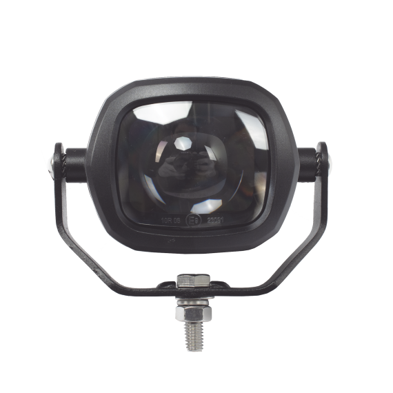 - Está diseñada para complementar una luz de advertencia de 360º al proyectar una flecha de advertencia azul en movimiento sobre el suelo en la parte delantera o trasera del vehículo