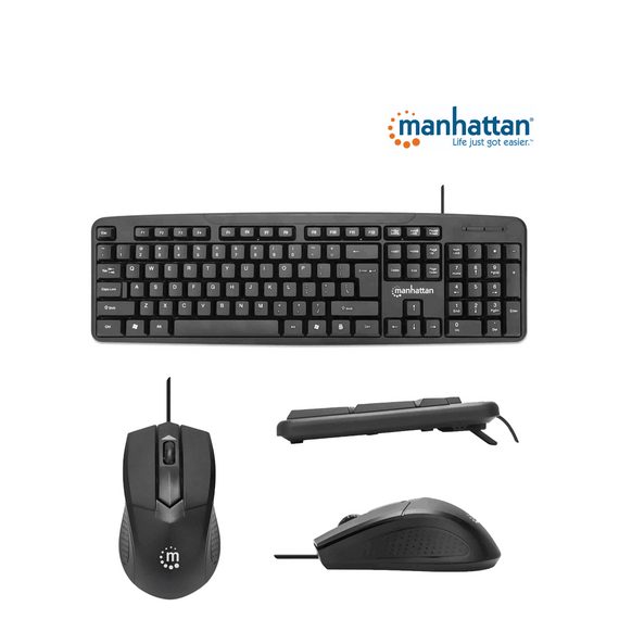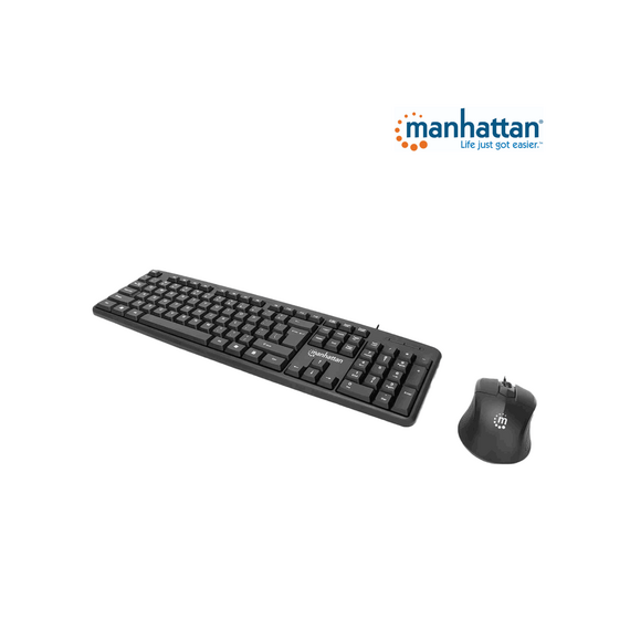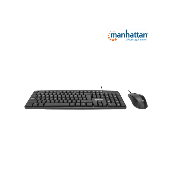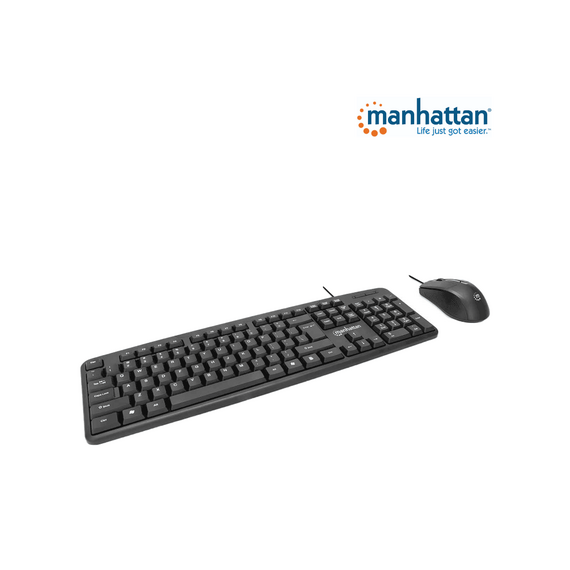 MANHATTAN 178464 Juego de teclado y mouse óptico, cableados Teclado con cable y ratón óptico con cable, negro 178464