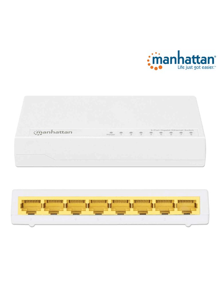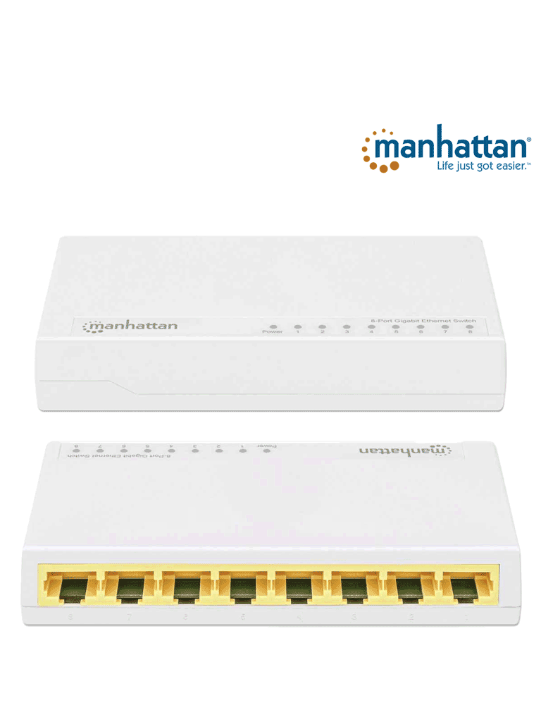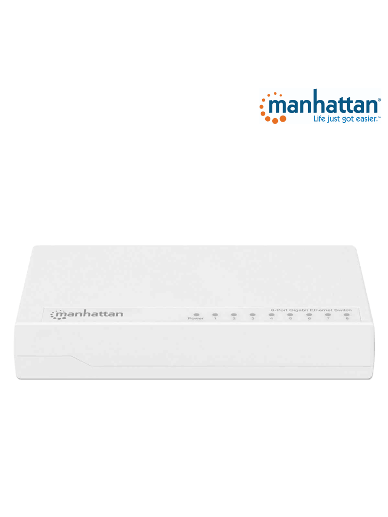 MANHATTAN 560702 Switch de Escritorio Gigabit Ethernet de 8 puertos De Plástico, Para escritorio, IEEE 802.3az (Ethernet de Eficiencia Energética)