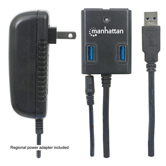 Manhattan Hub USB A 3.0 de Supervelocidad, 4 Puertos, 5000 Mbit/s, con Fuente