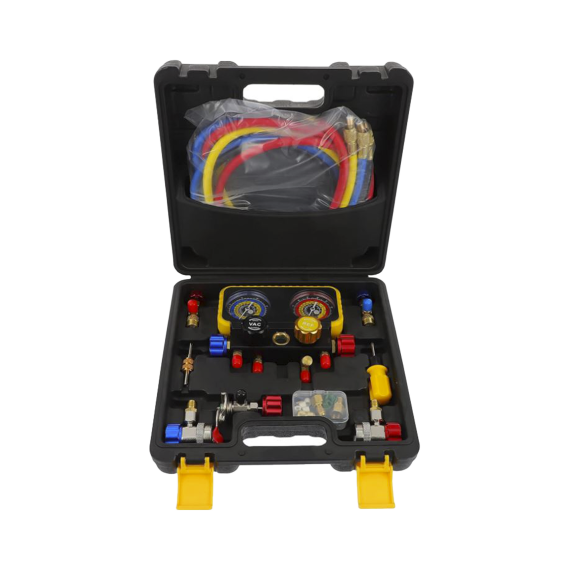 - Este juego de medición de colector de CA es ideal para mantenimiento profesional de HVAC