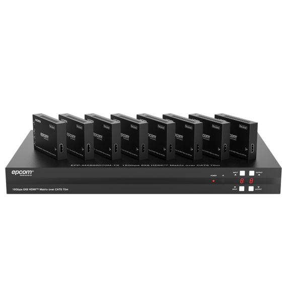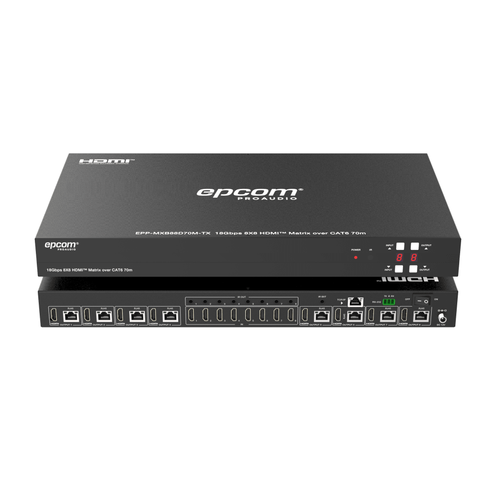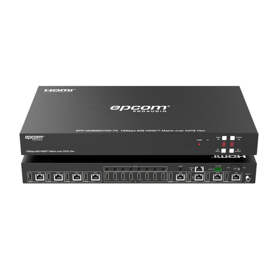 Matriz HDMI 8x8 | 4K@60Hz 4:4:4 | 8 Salidas HDMI + 8 CAT | Extensión hasta 70 m | Audio HD | Control IR/LAN/RS-232/Web GUI EPP-MXB88D70M