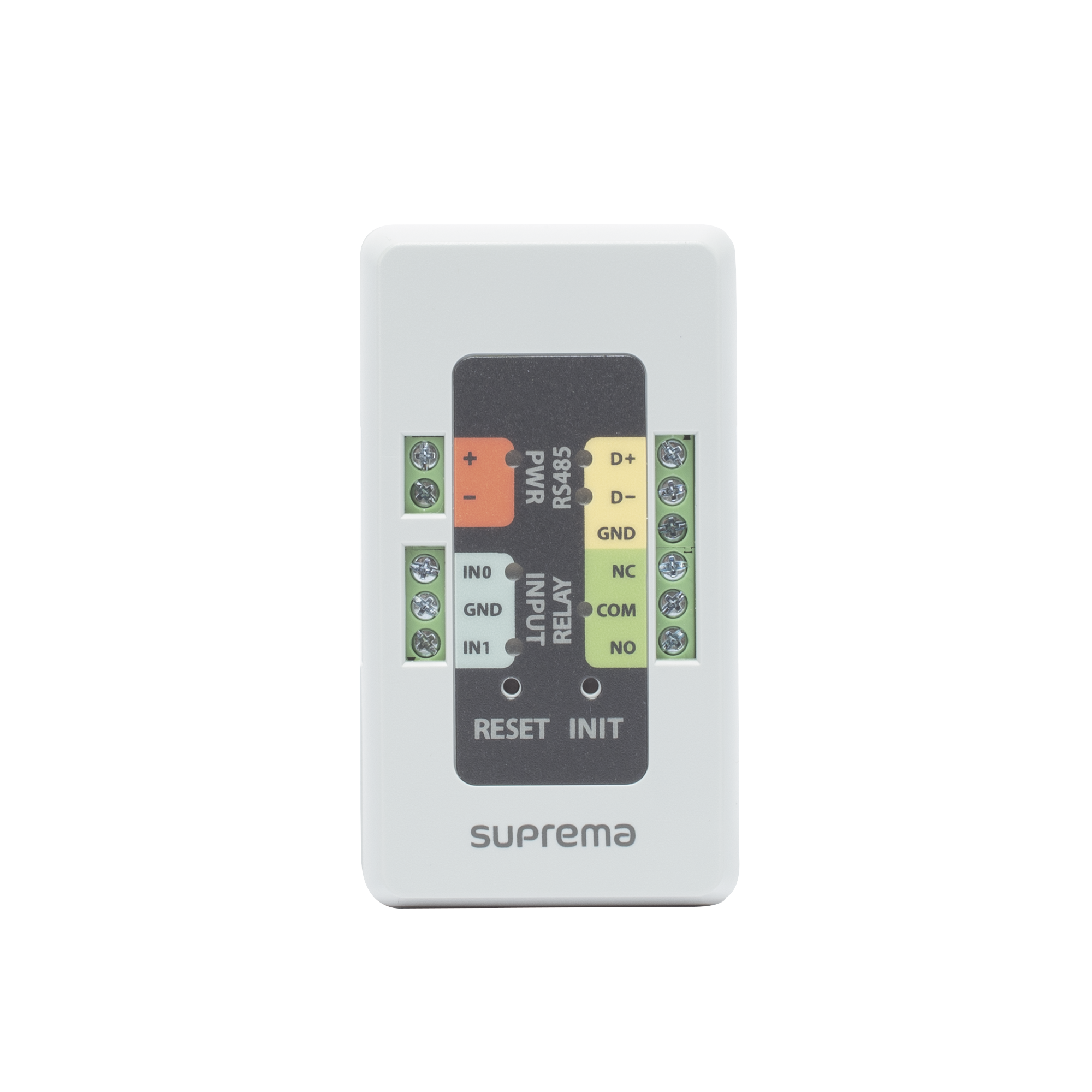 El SIO2 ofrece seguridad a su puerta, utilizando una comunicación encriptada, cuando es combinado con los lectores de Suprema. Ultra compacto, lo que permite instalarlo donde usted lo requiera.