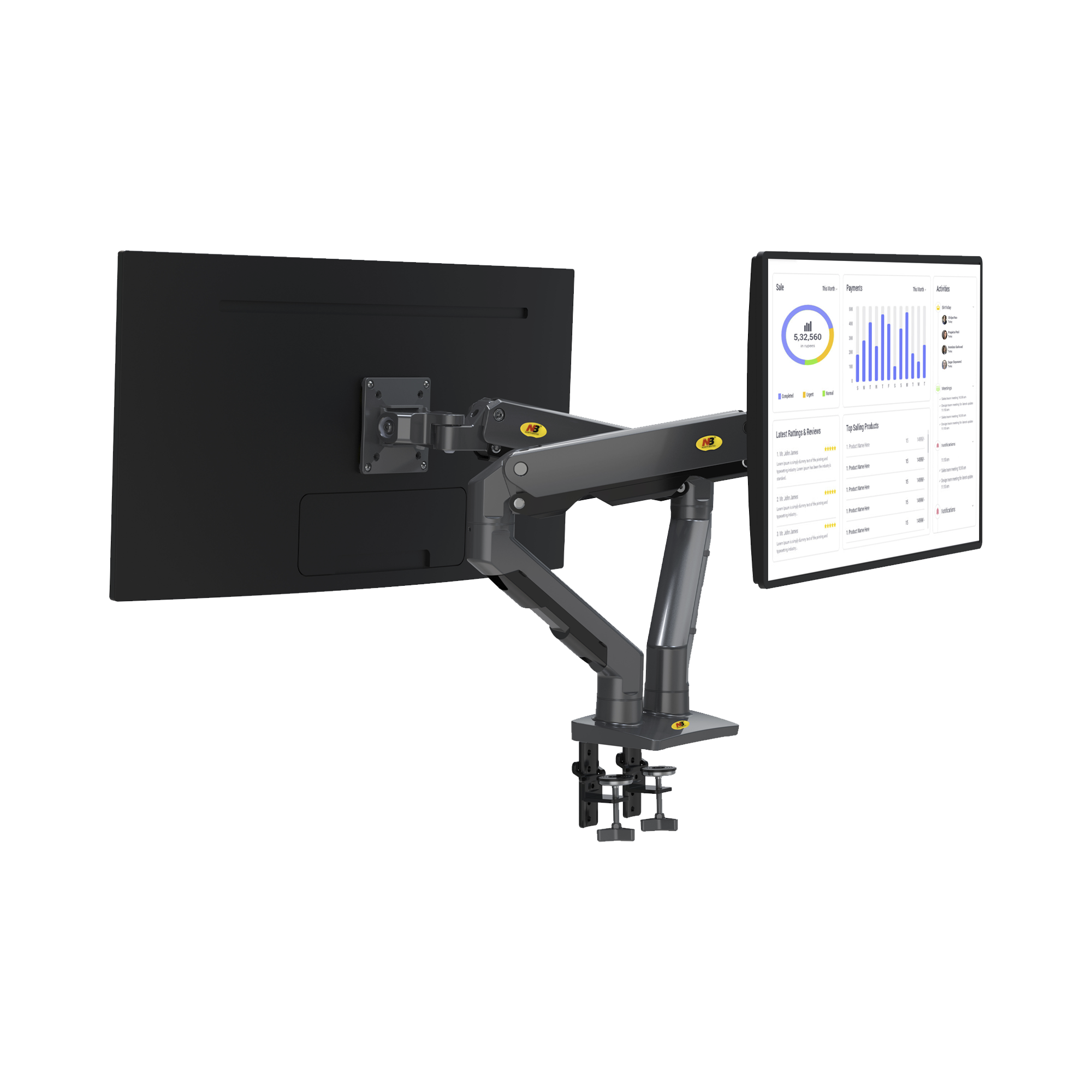 Montaje de Escritorio articulado para 2 monitores de 27-34\" / Soporta hasta 16 kg por brazo/ Vesa 75 x 75 / 100 x 100 / Acero / Giro: 360° G65-NB