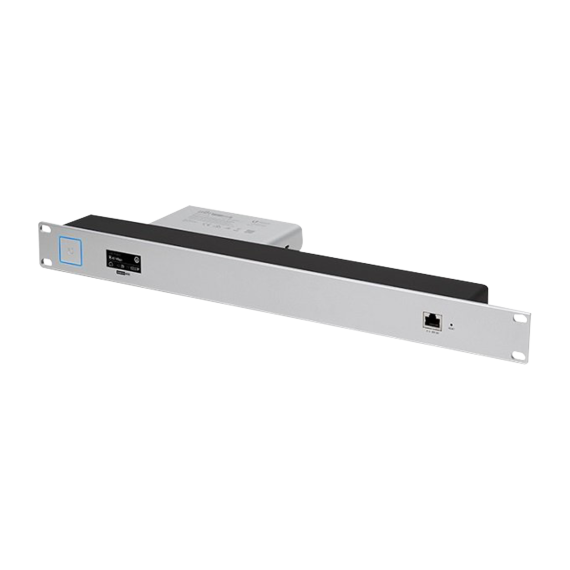 Montaje para CloudKey G2 (UCK-G2) o CloudKey G2 Plus (UCK-G2-PLUS) en un rack de 19' con este accesorio. El UCK-G2 y UCK-G2-PLUS se aseguran firmemente en la parte posterior del Accesorio de montaje en rack para una instalación limpia y segura. La pantalla del panel frontal, el conector Ethernet RJ45, el botón de reinicio y el LED de estado están expuestos en el panel frontal para un fácil acceso.