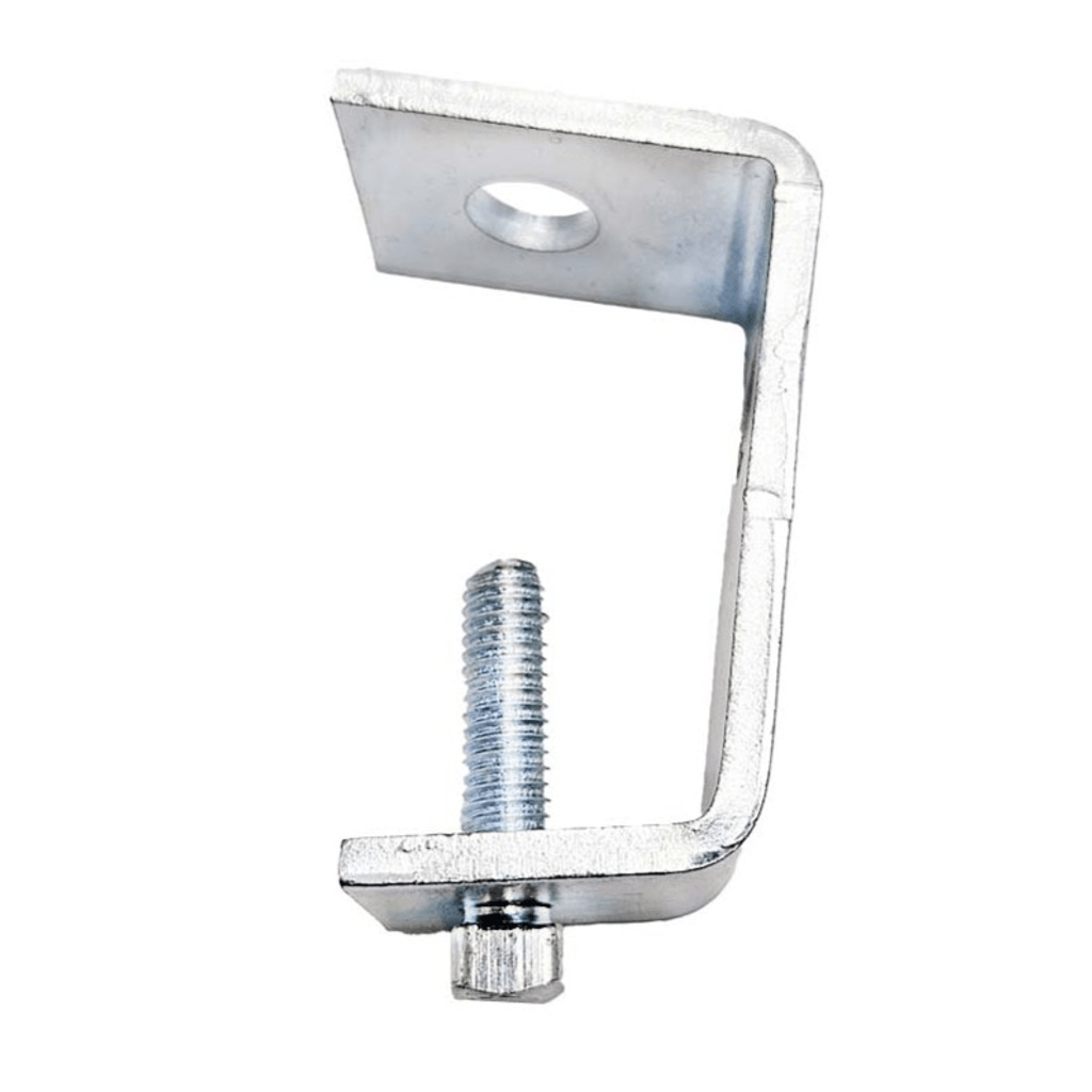 Mordaza de Suspensión Tipo C Larga ANC-HU03 – Soporte para Mensajero de Fibra Óptica y Coaxial – Acero Galvanizado – Alta Resistencia.