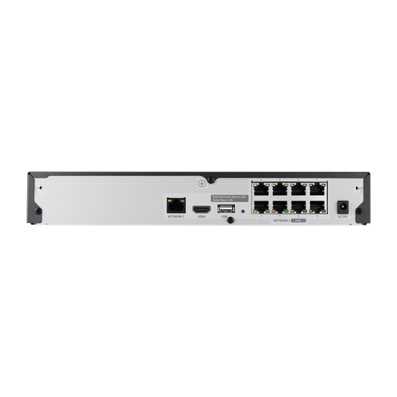 NVR ARN-810S-4TB, 8 Megapíxel / 8 canales / H.265 / P2P Wisenet / 8 puertos PoE / Incluye 4TB para grabacion / NDAA, ARN-810S-4TB
