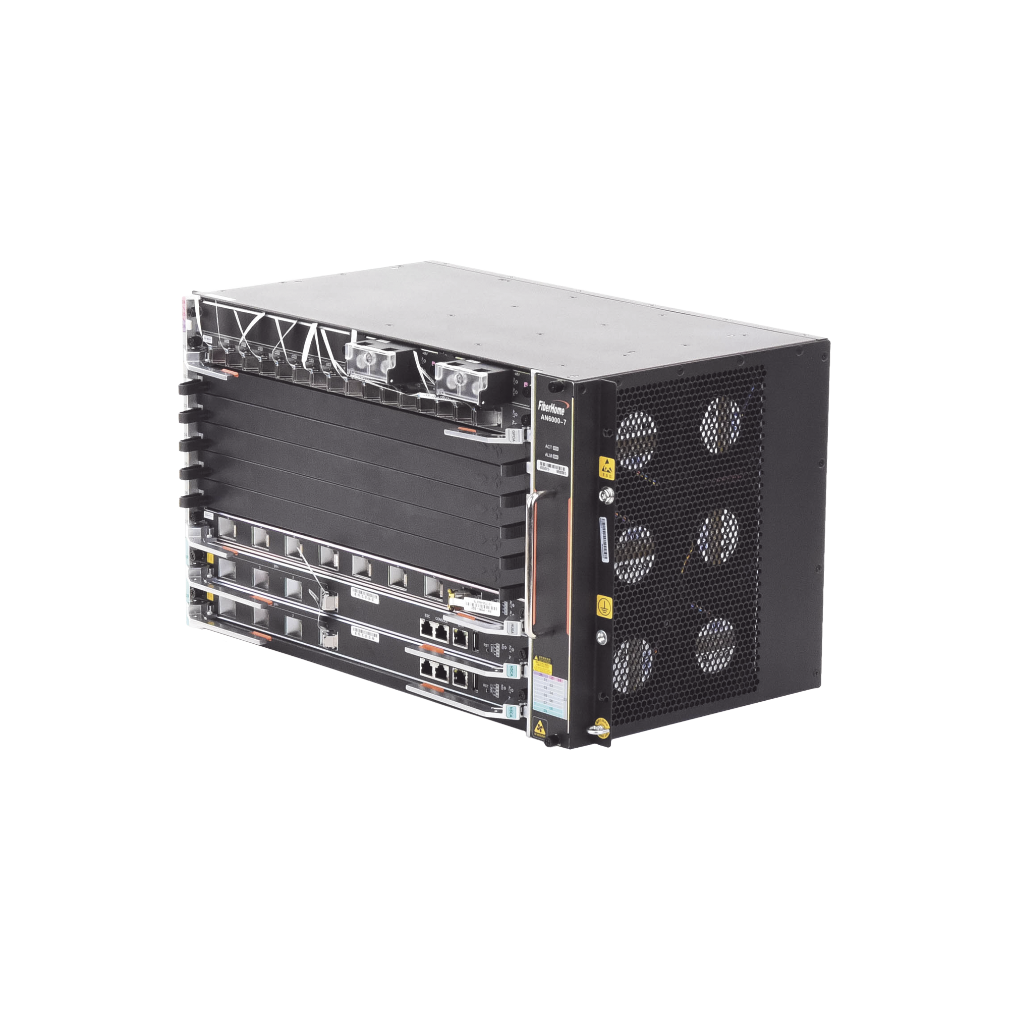 La OLT AN6000-7 Carrier Class con tecnología líder en la industria y admite todas las tarjetas de servicio en la parte frontal. Dispone de 6 ranuras de servicio y permite un crecimiento por medio de tarjetas de servicio de hasta 96 puertos GPON o 48 XGPON para integrar múltiples servicios.