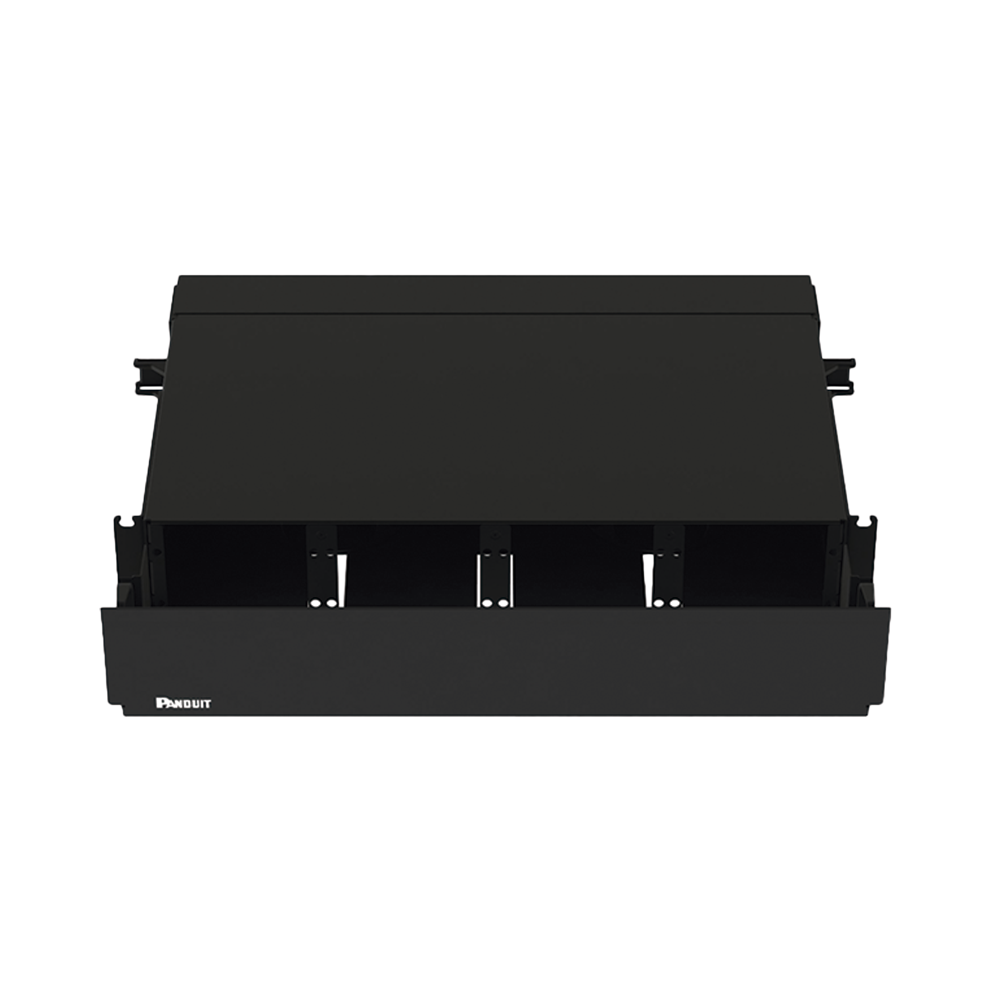 Panel de Distribución de Fibra Óptica, Acepta 8 Placas FAP o FMP, Bandeja Deslizable, Hasta 192 Fibras, Color Negro, 2 UR FRE2UBL