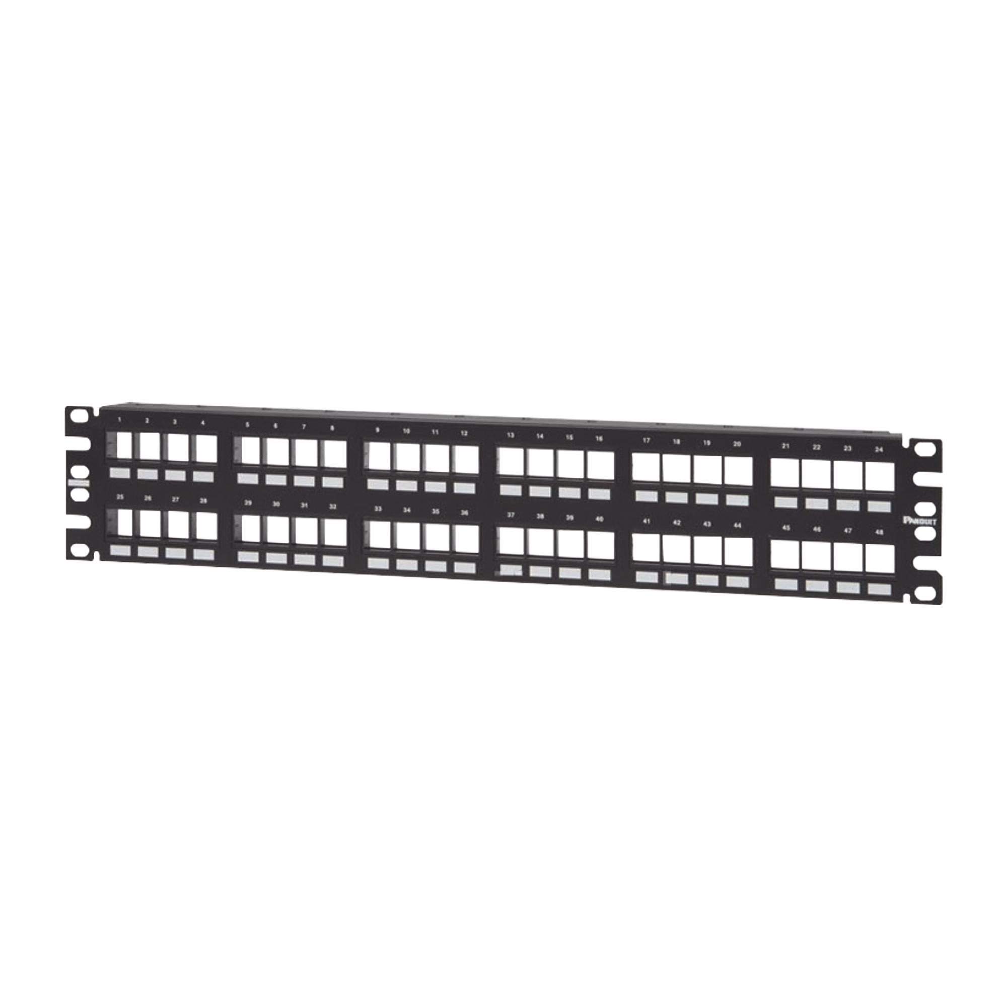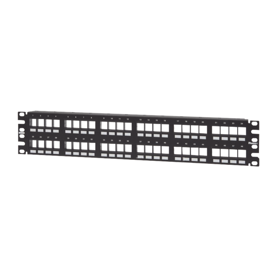 Panel de Parcheo Modular Keystone (Sin Conectores), Numerado y Espacio para Etiquetas, de 48 Puertos, 2UR NKPP48FMY