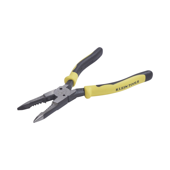 - Pinzas combinadas que pelan y cortan cable sólido de 8-16 AWG y cable trenzado de 10-18 AWG.