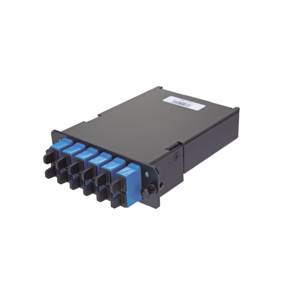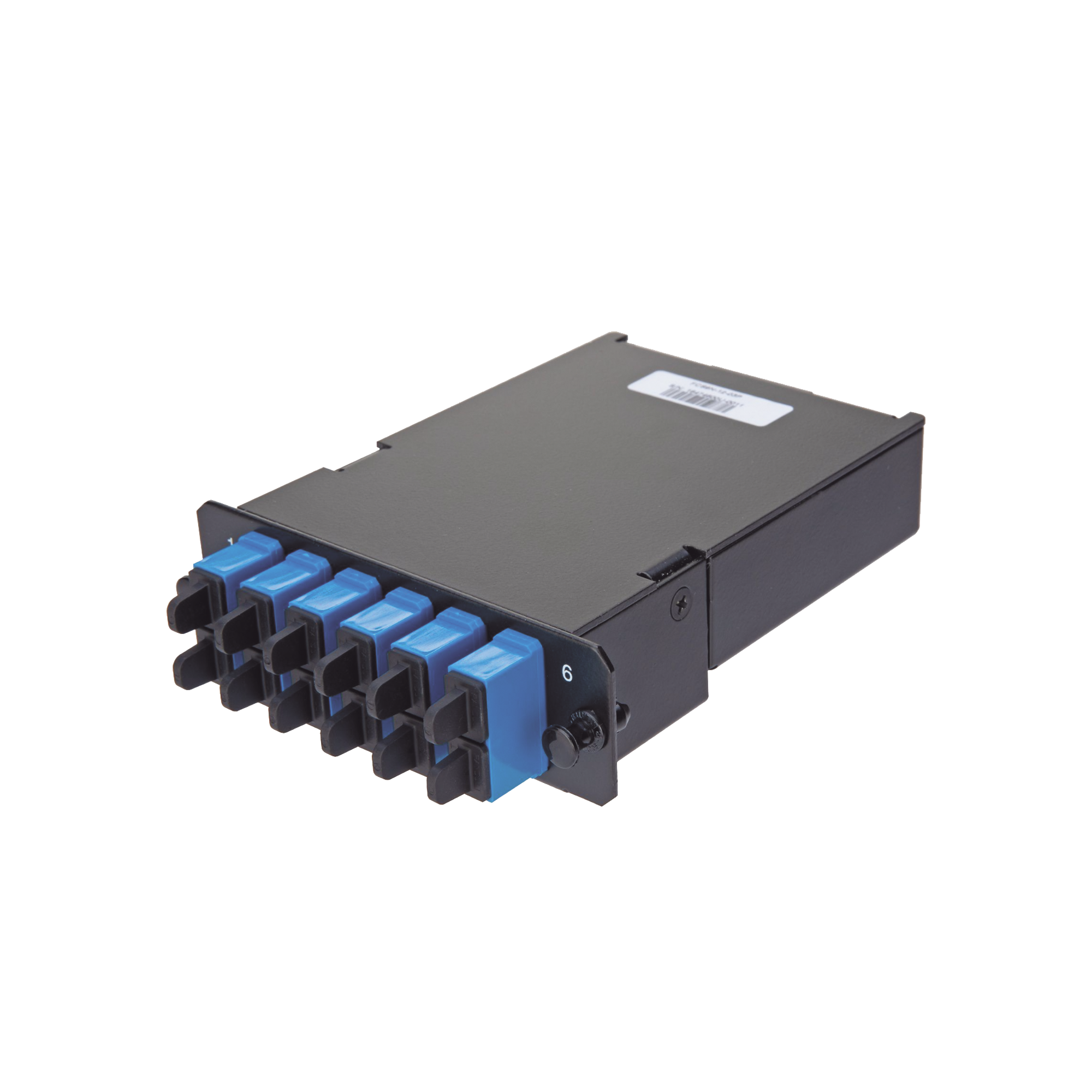 Placa Acopladora de Fibra Óptica FAP, Con 12 Pigtails y 6 Conectores LC Duplex (12 Fibras), Para Fibra Monomodo OS1/OS2, Color Azul FCS9N-12-10P