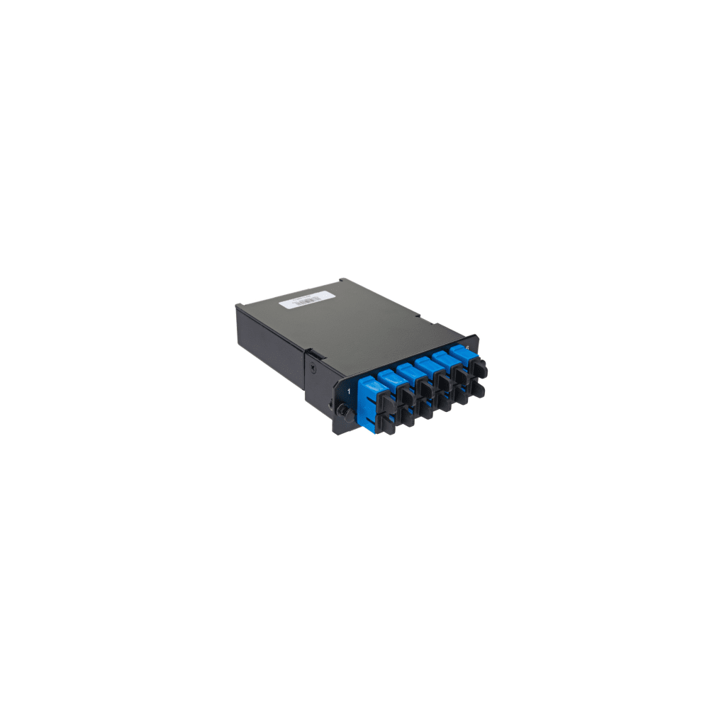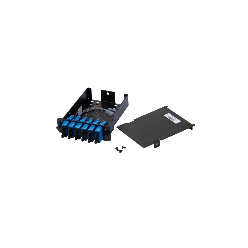 Placa Acopladora de Fibra Óptica FAP, Con 12 Pigtails y 6 Conectores SC Duplex (12 Fibras), Para Fibra Monomodo OS1/OS2, Color Azul FCS9N-12-03P