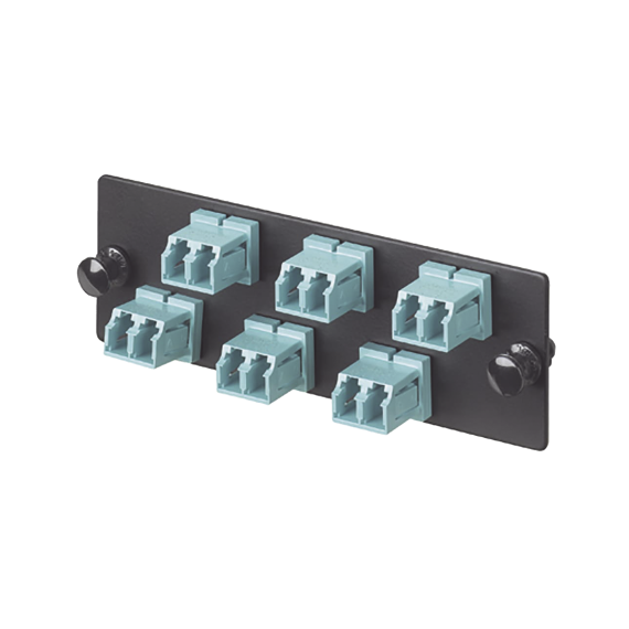 Placa Acopladora de Fibra Optica FAP, Con 6 Conectores LC Duplex (12 Fibras), Para Fibra Multimodo OM3/OM4, Color Aqua FAP6WAQDLCZ